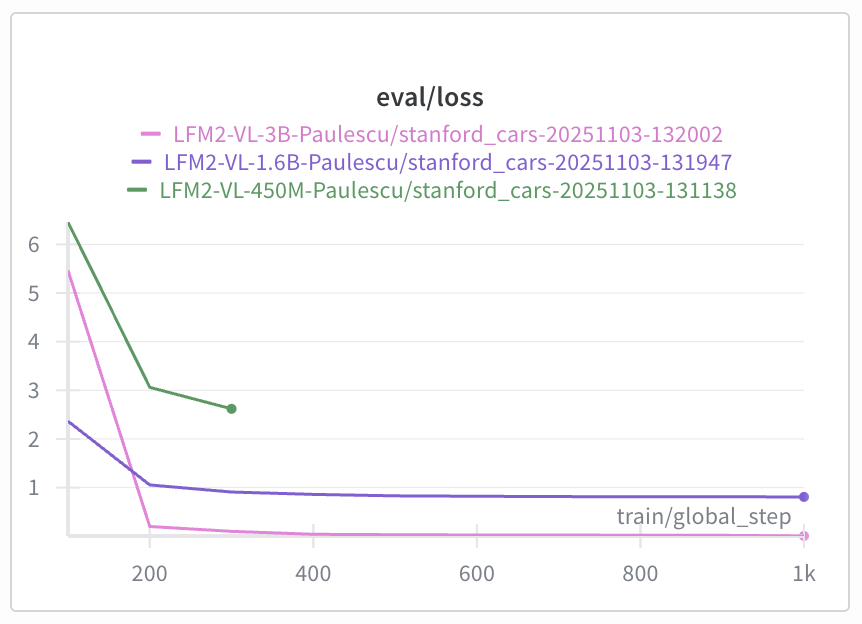 - the LFM2-VL-3B model has the lowest loss, and